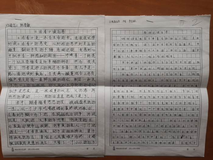 來自各班的46名同學參加了比賽。比賽現(xiàn)場緊張而有序,同學們時而靜心沉思,沉浸在書中的世界,時而奮筆疾書,將心中的所思所想化為文字。同學們將自己對閱讀名著的理解和感悟充分抒發(fā)出來,語言平實真切,內容感人真摯。