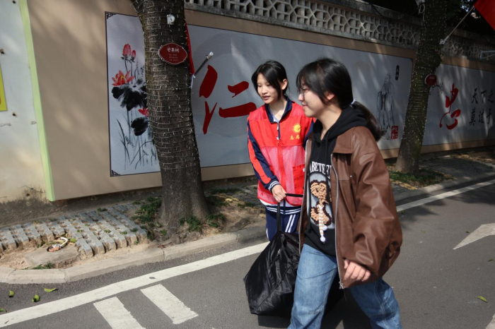活動中,志愿者們身著紅色馬甲,活躍在校門口、環(huán)島雕像、學(xué)生宿舍樓等重點區(qū)域,為同學(xué)們提供行李搬運、秩序維護等“一站式”貼心服務(wù)。他們熱情洋溢的身影,成為校園里一道亮麗的風(fēng)景線,讓同學(xué)們感受到了溫暖與關(guān)懷,保障了開學(xué)返校工作平穩(wěn)有序進行。