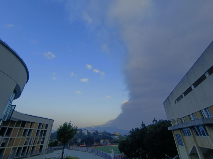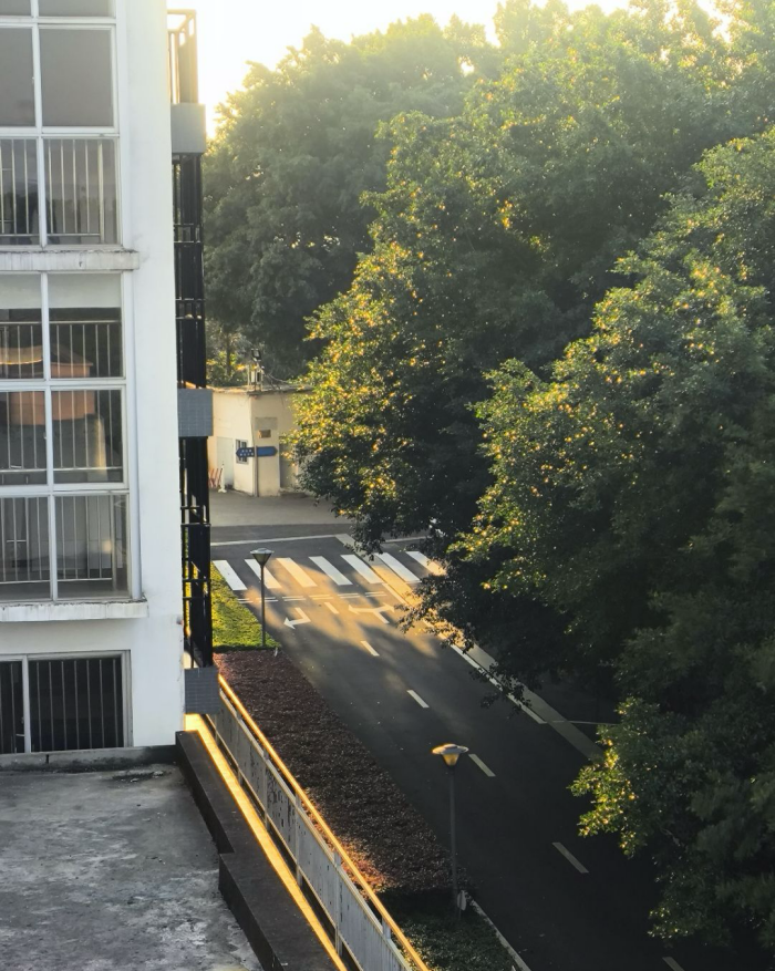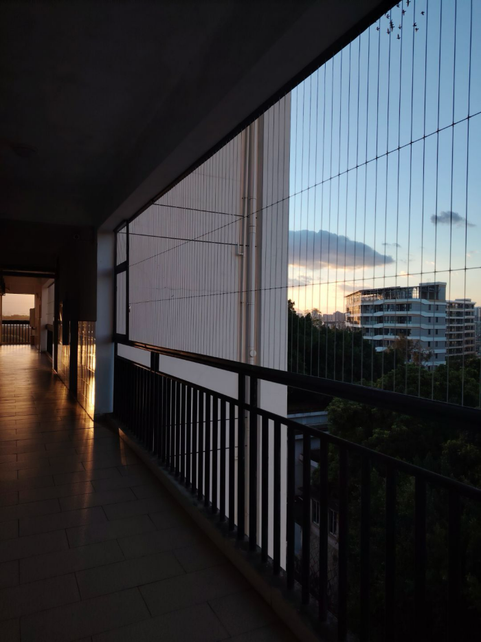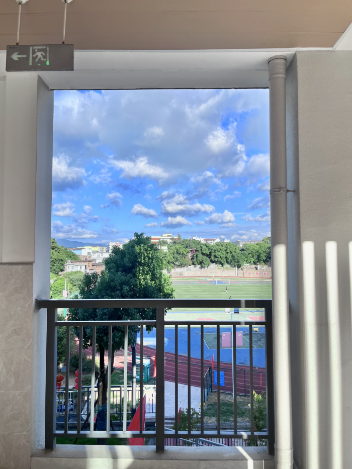 當(dāng)?shù)谝黄ò觑h落校園的連廊