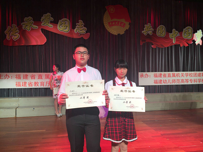為引導廣大學生深入學習、了解和掌握傳統經典文化精髓,努力弘揚和傳承優秀中華傳統文化,由福建省直屬機關團工委和福建省教育廳直屬機關團委主辦的“紀念12·9運動80周年暨第二屆省直學校經典誦讀”比賽于11月29日上午8:00在福建幼兒師范高等專科學校隆重舉辦。我校13通信大專1班的徐俊杰、吳昊和15信息技術大專班的吳涵宇、施詩敏四位同學參加了此次比賽。
