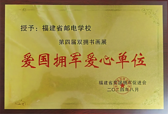 8月1日,“愛我人民愛我軍·八閩魚水情”第四屆雙擁書畫展暨表彰大會在福州畫院隆重舉行。本次活動由福建省退役軍人事務廳、省雙擁辦、省軍區政治工作局、省文聯、省愛國擁軍促進會聯合舉辦,我校被授予“愛國擁軍愛心單位”。蘇嶸校長受邀出席并代表學校接受頒獎。