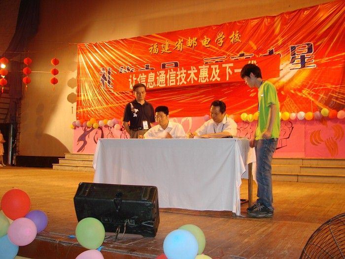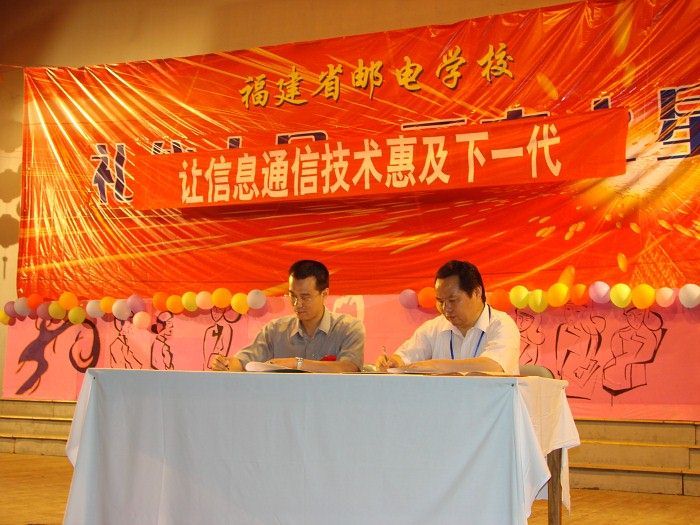技能競賽開幕式由劉蘇軍副校長主持,在開幕式,不僅進行了福建省通信管理局、福建省通信學會向學校共同贈書3000冊的儀式,而且還進行了福建省郵電工程公司、福建富通信息產業公司、福建電信技術發展有限公司與學校校企合作簽約儀式。