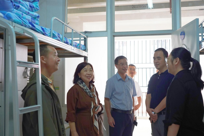 會后,我校黨委書記包曉暉,黨委副書記、校長蘇嶸,副校長陳霓、林鵬陪同來賓一行人參觀了學生公寓樓以及教學實訓場所。